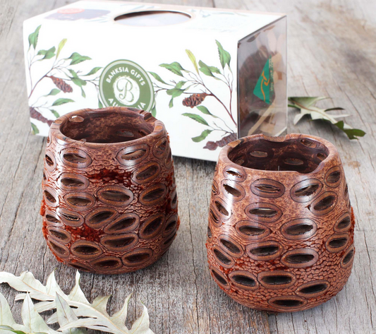 Boxed Pair of Banksia Nut Tea Light Candle Holders